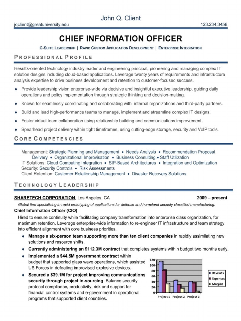 Chief Information Officer Cio Resume Examples