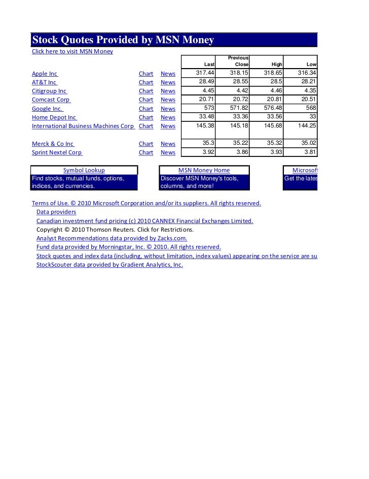 Copy Of Stock Quotes Provided By Msn Money