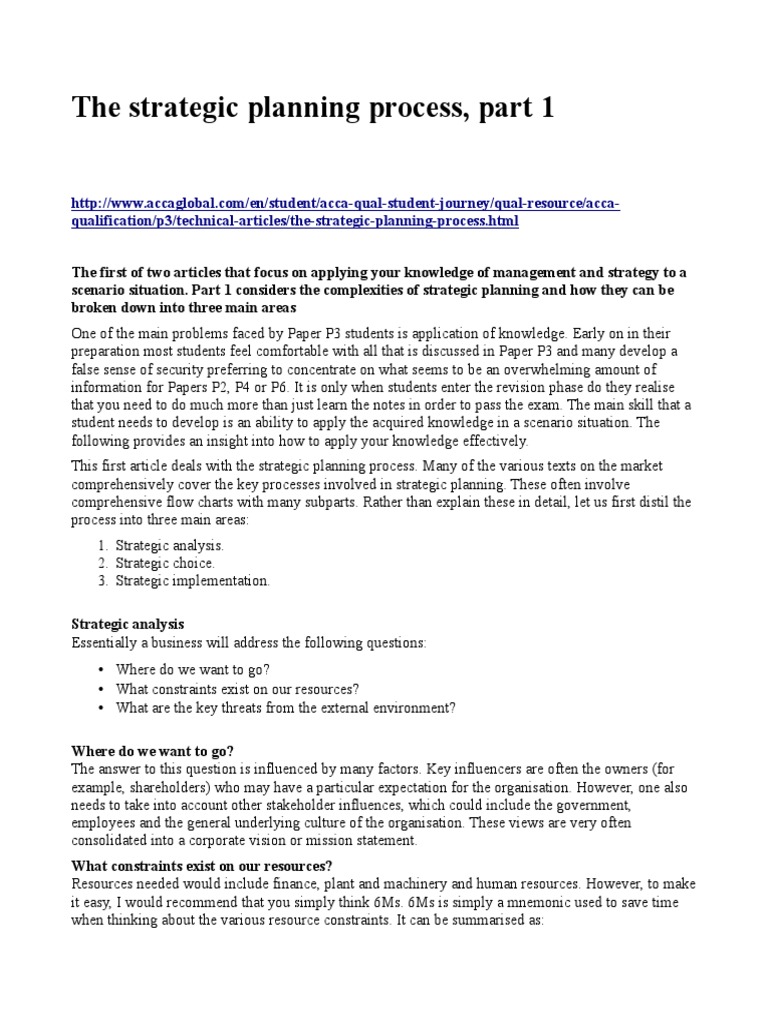 Pdf The Strategic Planning Process Part 1 Farhad Dawood Academia Edu