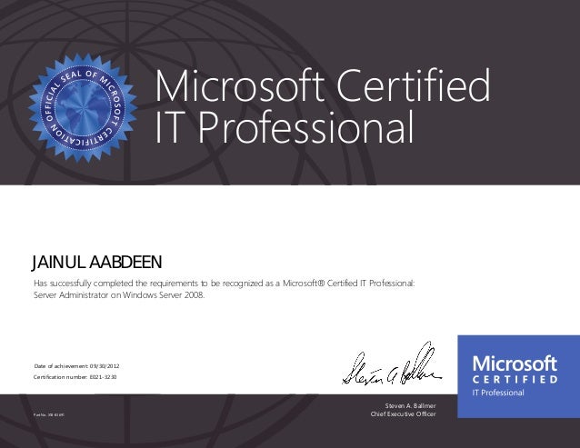 Microsoft certified it professional. Learn more about MCITP certifications. An MCITP Microsoft Certified IT Professional is a credential that proves that an individual has a complete set of skills required to perform a particular IT job role such as enterprise or virtualization administrator. Decide the certification best suitable to you - Understand what you need.